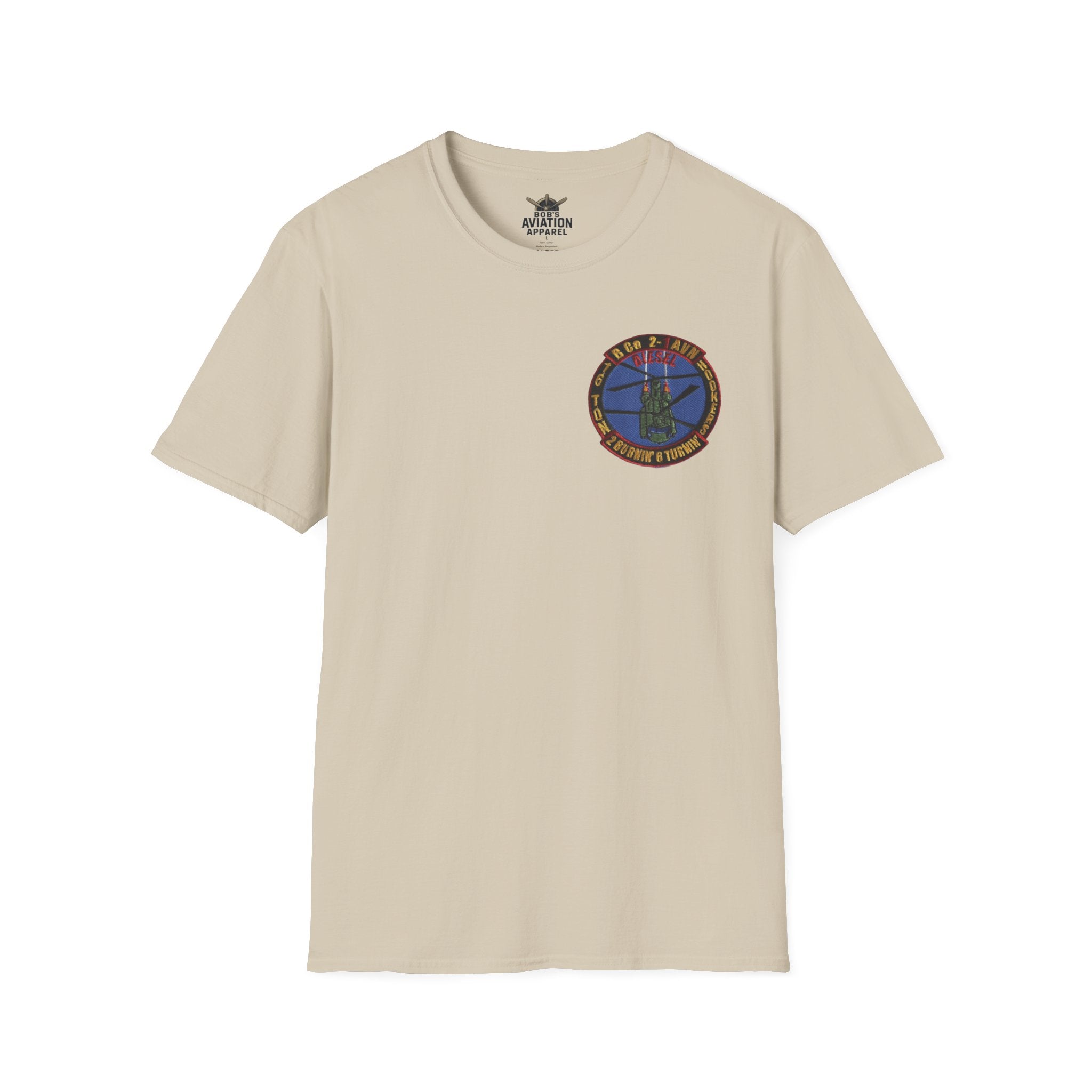 Designed for Army aviators, this Flight Uniform T-Shirt is available in approved colors — Sand, OD Green, and Sage Green — for wear under the Army flight suit. Made from soft, durable cotton, it's built for comfort during long duty days in the cockpit, on the flight line, or in the field. Proudly printed in the USA by a veteran-owned brand, this shirt combines regulation compliance with everyday practicality.